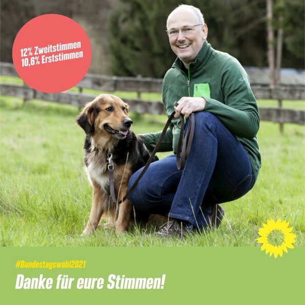 "Herzlichen Dank für starke 12% der Zweitstimmen und 10,6% der Erststimmen im Wahlkreis. Leider reicht es nicht für den Einzug in den Bundestag, aber ich freue mich riesig über den starken Rückenwind für die Arbeit vor Ort und über fünf GRÜNE Abgeordnete aus Rheinland-Pfalz, die uns zukünftig in Berlin vertreten.